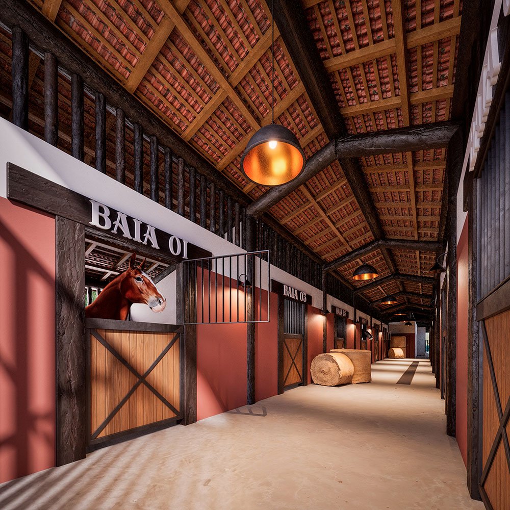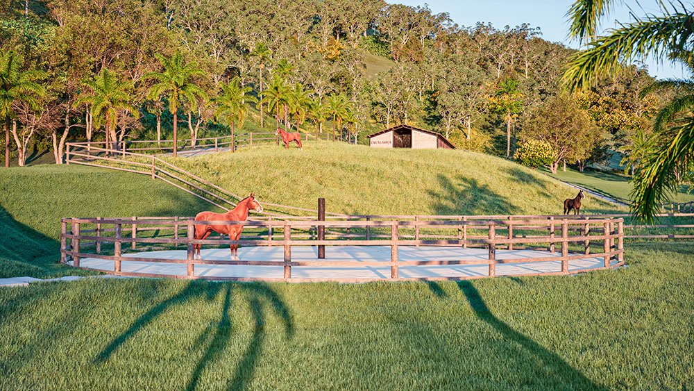 🏇 O destaque fica por conta do centro hípico completo, com 19 baias, redondel, piquetes e pista de hipismo, perfeito para criadores e amantes do mundo equestre.