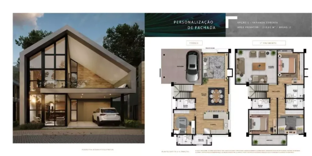 🏡 Casas de 185m² a 210m² | 4 dormitórios (3 suítes) | 2 vagas